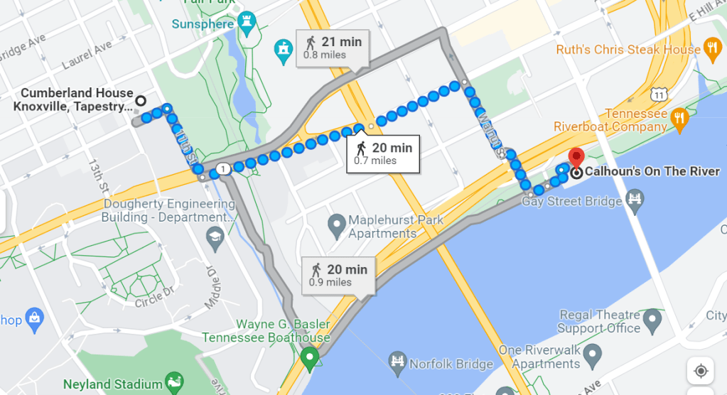 - Location: Calhoun’s on the River (400 Neyland Dr, Knoxville, TN 37902)